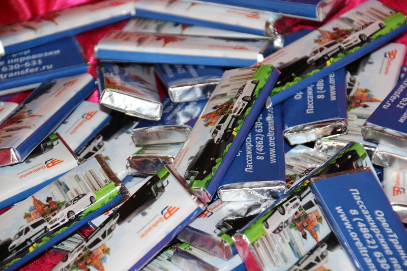 • Оптимальное соотношение цены и качества на шоколад с логотипом;
